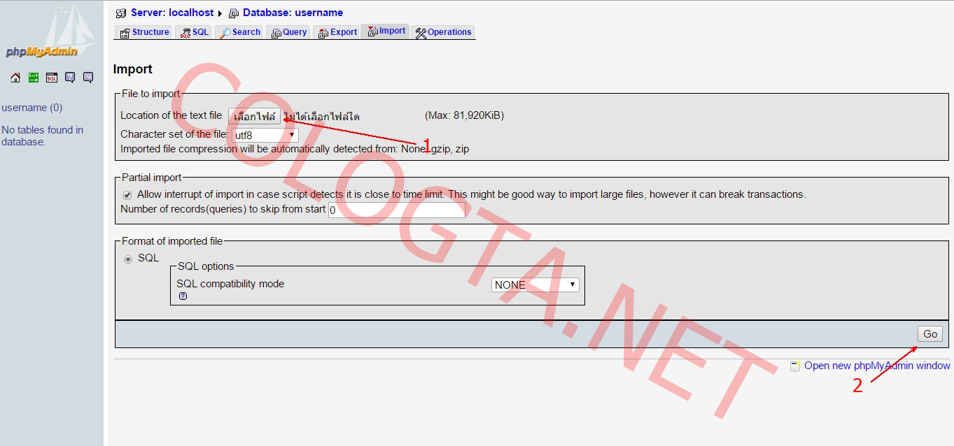 วิธีการ Import หรือนำเข้าดาต้าเบสใน PhpMyAdmin